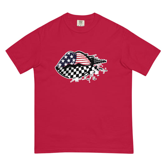 American Flag / Checkered Flag Racing Lips - Unisex garment-dyed heavyweight t-shirt